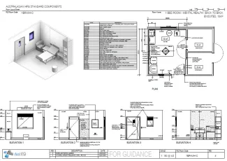 A single bed room to be used to accommodate patients within a mental health unit. The 1 Bed Room - Mental Health may vary in configuration to suit different ensuite options and this room includes a back to back ensuite.