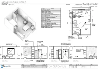 A single bed room to be used to accommodate patients within a mental health unit. The 1 Bed Room - Mental Health may vary in configuration to suit different ensuite options and this room includes an inboard ensuite.