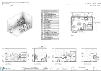 The Clean-Up Room provides space and amenity for gross decontamination of instruments used in Operating Rooms or Procedure Rooms, storage for cleaning supplies and equipment, as well as storage of waste prior to collection.
