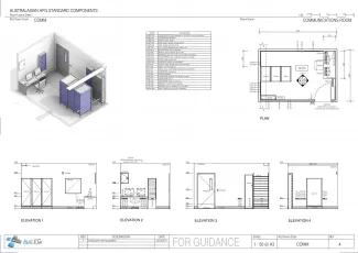 A secure room for engineering services to accommodate communications racks, interface control panels for communication systems which may include MATV, Nurse Call and Fire/EWIS system and voice/ data backbone cabling. Equipment located in this room may require an uninterruptible power supply. The area shown is indicative only. The size of the Communications Room will be project specific and will vary according to engineering consultant advice.