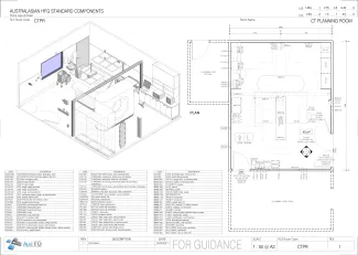 The CT Planning Room provides space and facilities for Computed Tomography (CT) scanning procedures as part of the planning of radiation therapy treatment for patients. A collocated Control Room with observation window is required for the remote operation of equipment.