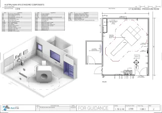 A room for CT scanning procedures with an adjacent control room and computer room. The control room may serve more than one CT scanning room.