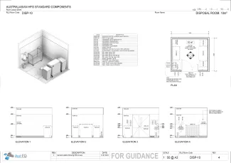 The Disposal Room provides for the temporary holding of waste, separated into various waste streams (general waste, clinical waste, cardboard recycling, co-mingled recycling, cytotoxic waste, confidential waste, sharps, soiled linen, etc.) prior to removal to a designated waste zone in the loading dock.