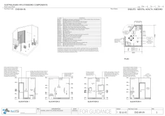 The Ensuite - Mental Health provides a shower, toilet and handwash basin for use by consumers in a mental health inpatient unit. The inboard ensuite layout is used in conjunction with the 1 Bed Room - Mental Health, Inboard Ensuite (1BR-MH-IN).