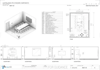 - Acoustics to be carefully considered to ensure appropriate sound levels, particularly with video conferencing equipment provided, and to reduce noise transfer to/from adjacent areas for privacy and to reduce disruption. Background noise (e.g. from air conditioning) should be minimised. Hard surfaces may be covered to reduce reverberation as required.