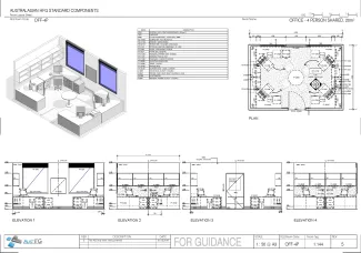 An office space to be shared by four persons for carrying out administrative functions in a degree of privacy. The area will allow for group discussions at a small table, if required.