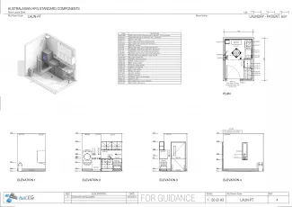 Domestic style laundry for patient use. The room will include a bench, laundry tub, domestic style washing machine, dryer and ironing facilities.